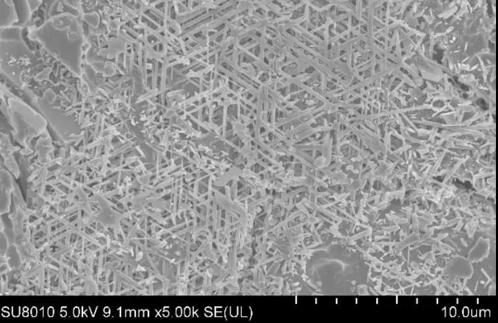 威爾斯陶瓷通過優(yōu)化坯體配方,使得瓷磚內(nèi)部形成相互交織的網(wǎng)格狀莫來石針狀晶體結(jié)構(gòu),顯著提升瓷磚力學(xué)性能,產(chǎn)品硬度更高,更耐磨。