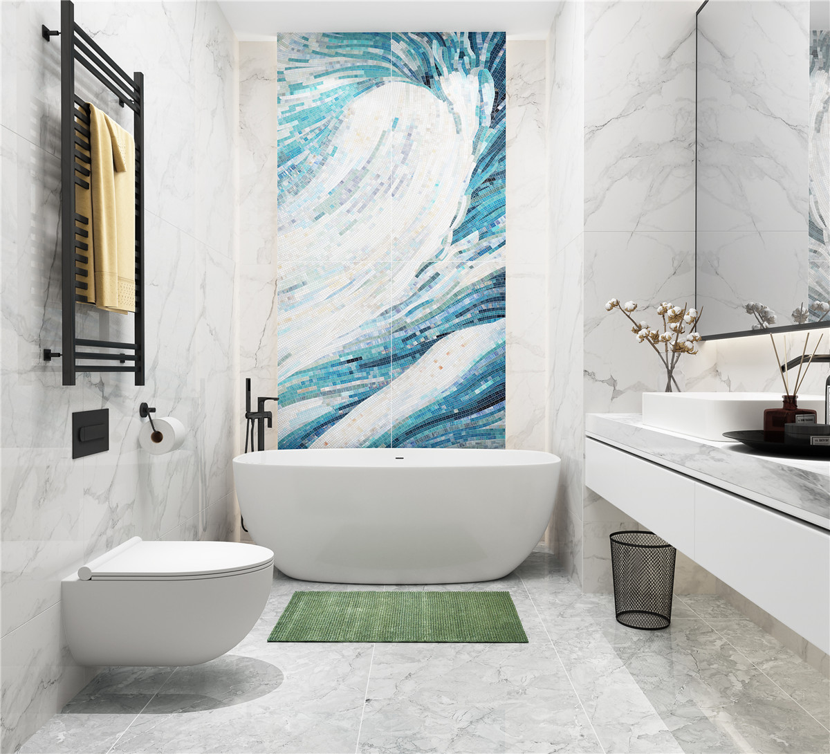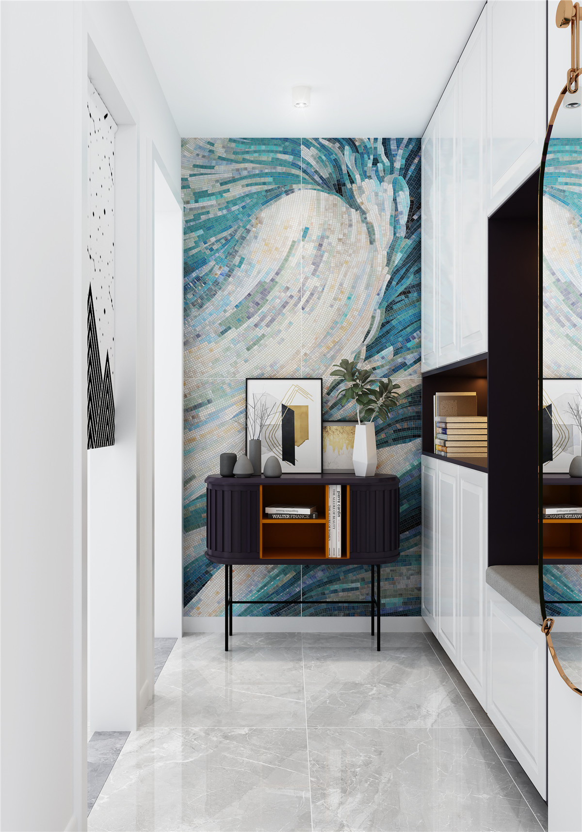 由素雅的馬賽克拼接而成的“海洋之心”壁畫,將海浪行動的軌跡完美呈現,仿佛聽見海浪拍打礁石的聲音,鏗鏘有力。