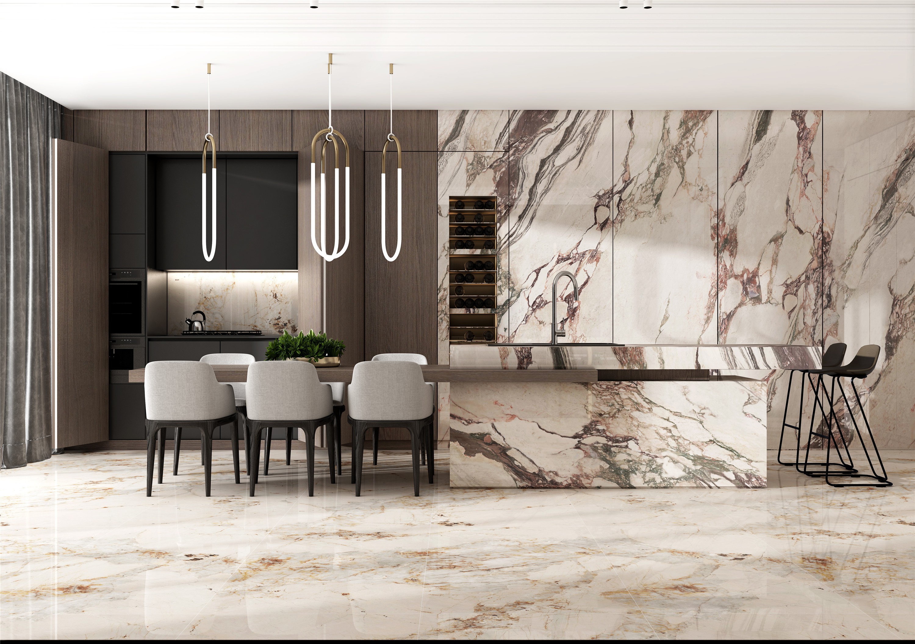 乳白色的底滲入紫色的紋路肌理,她們互生而貴,互換而奇,莫測如是,讓人無不驚嘆大自然的造化,優美而生動??钍姜毺兀b飾總能營造出一種高貴、典雅又帶著點神秘的效果。