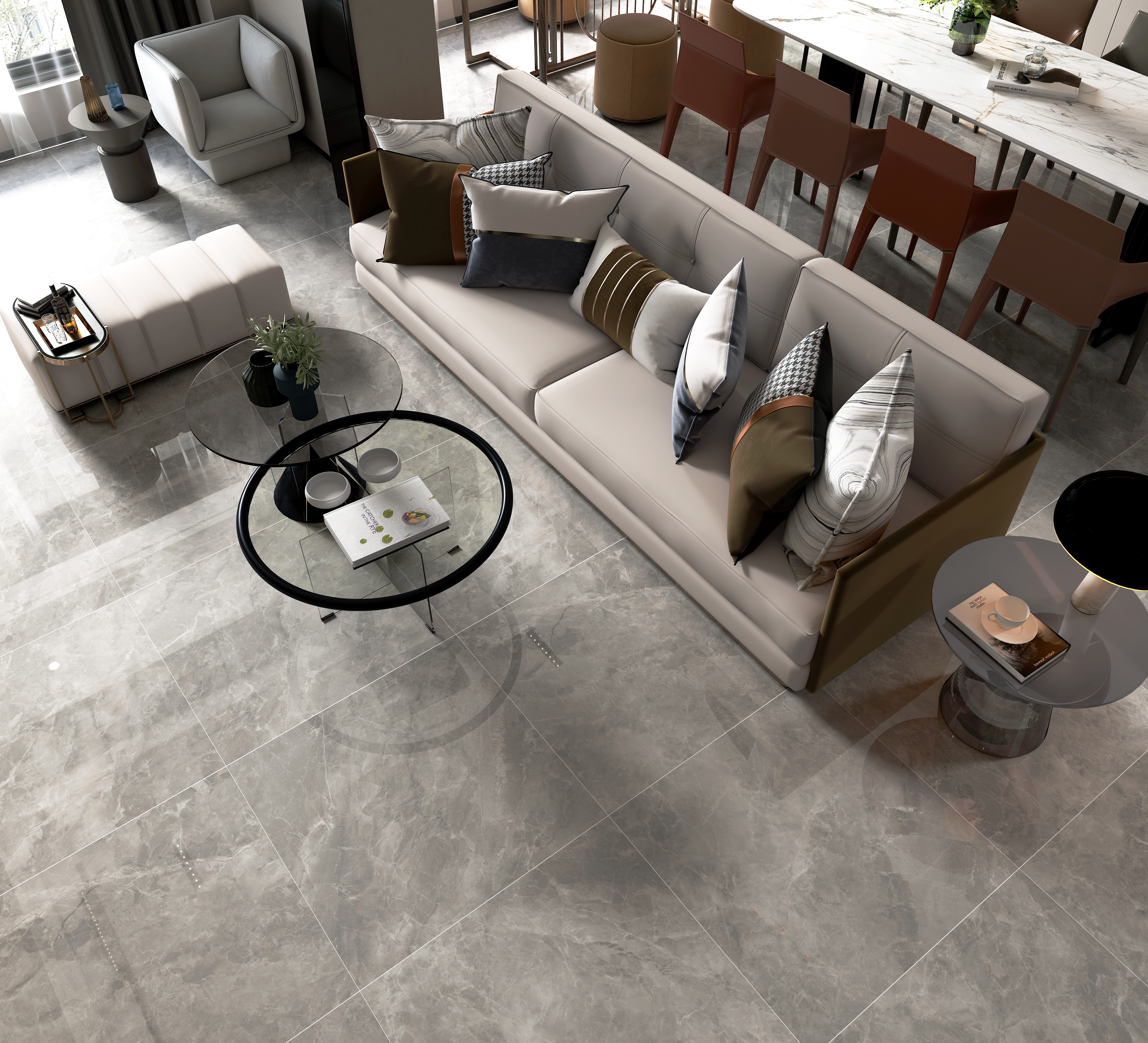 淡灰色的紋路又讓整個空間彌漫著一種浪漫與柔情。將理性成熟與優雅浪漫這兩種原本格格不入的元素巧妙地契合在一起,給人以極致的美感。