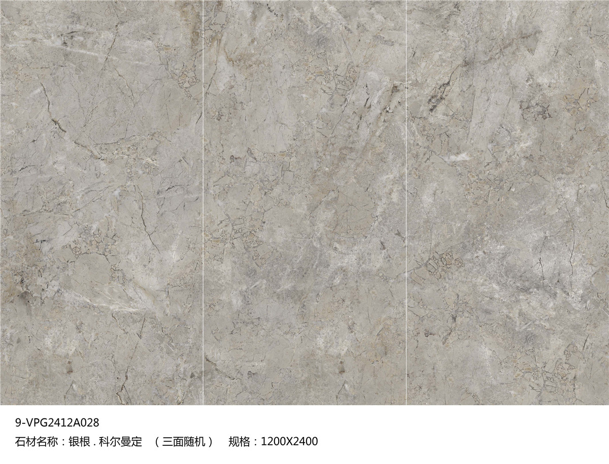 整體紋路以不規則的紋理走向描繪石材的視覺效果,并結合柔和的金色線條紋理,灰、白、金三色交織重現天然石材的自然裂紋效果。