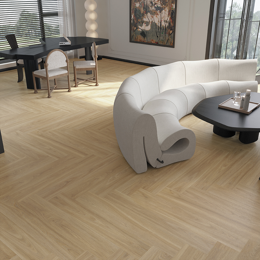 VCGA1220001 破曉木紋磚 將自然木紋與晨曦色調完美融合,打造出溫暖而富有層次感的視覺效果。其表面逼真還原天然木材的紋理與質感,同時具備瓷磚的耐用性與易清潔特性,完美解決了實木地板的保養難題。色調柔和,仿佛清晨陽光灑在木地板上,為空間注入溫馨與舒適的氛圍。