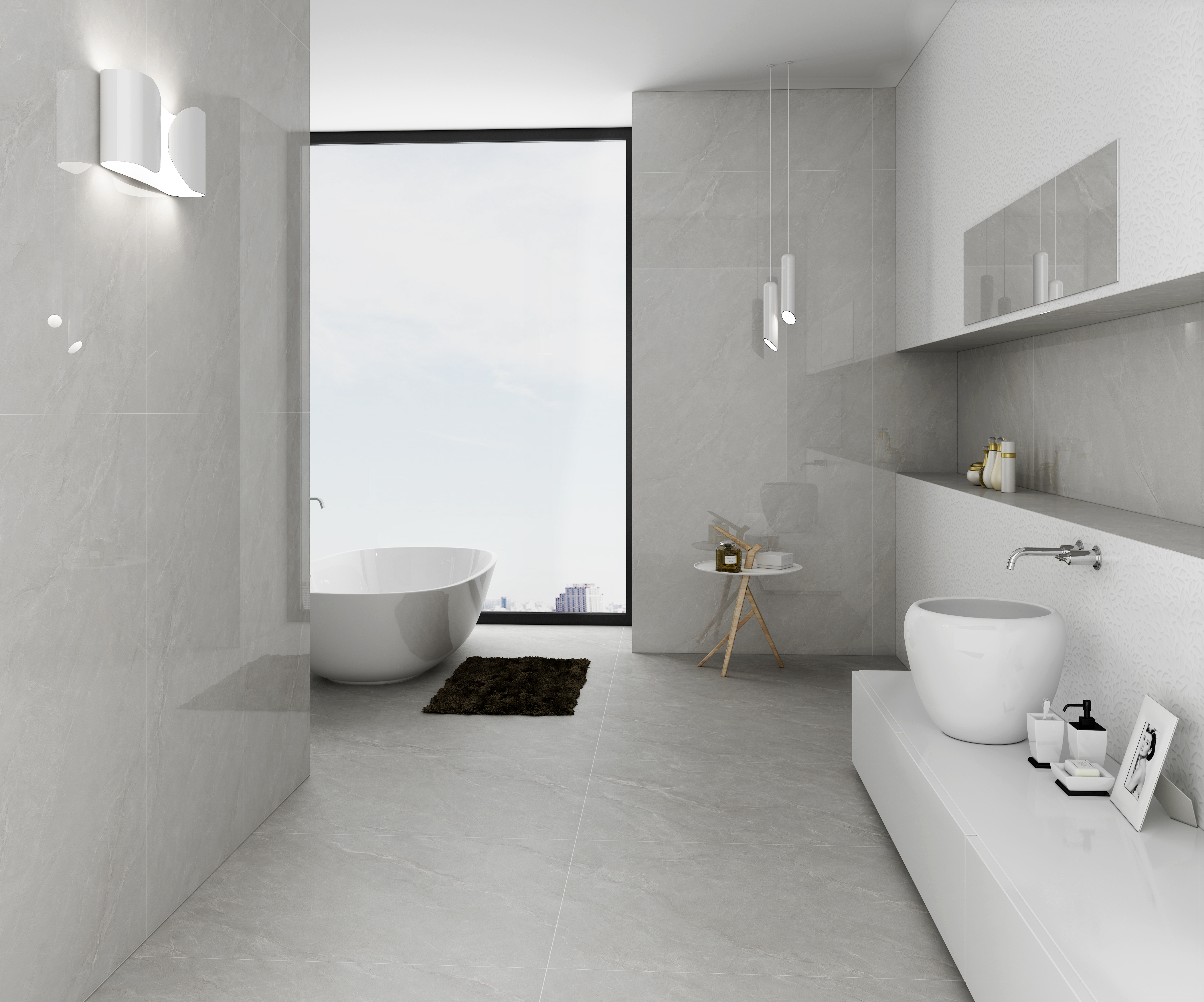 破曉時分海天交界處的第一縷天光,將深海魚的銀腹幻化成空間詩學。柔霧質地下暗藏珍珠母貝般的虹彩,灰白基調隨光線角度變幻出微妙的藍紫脈動