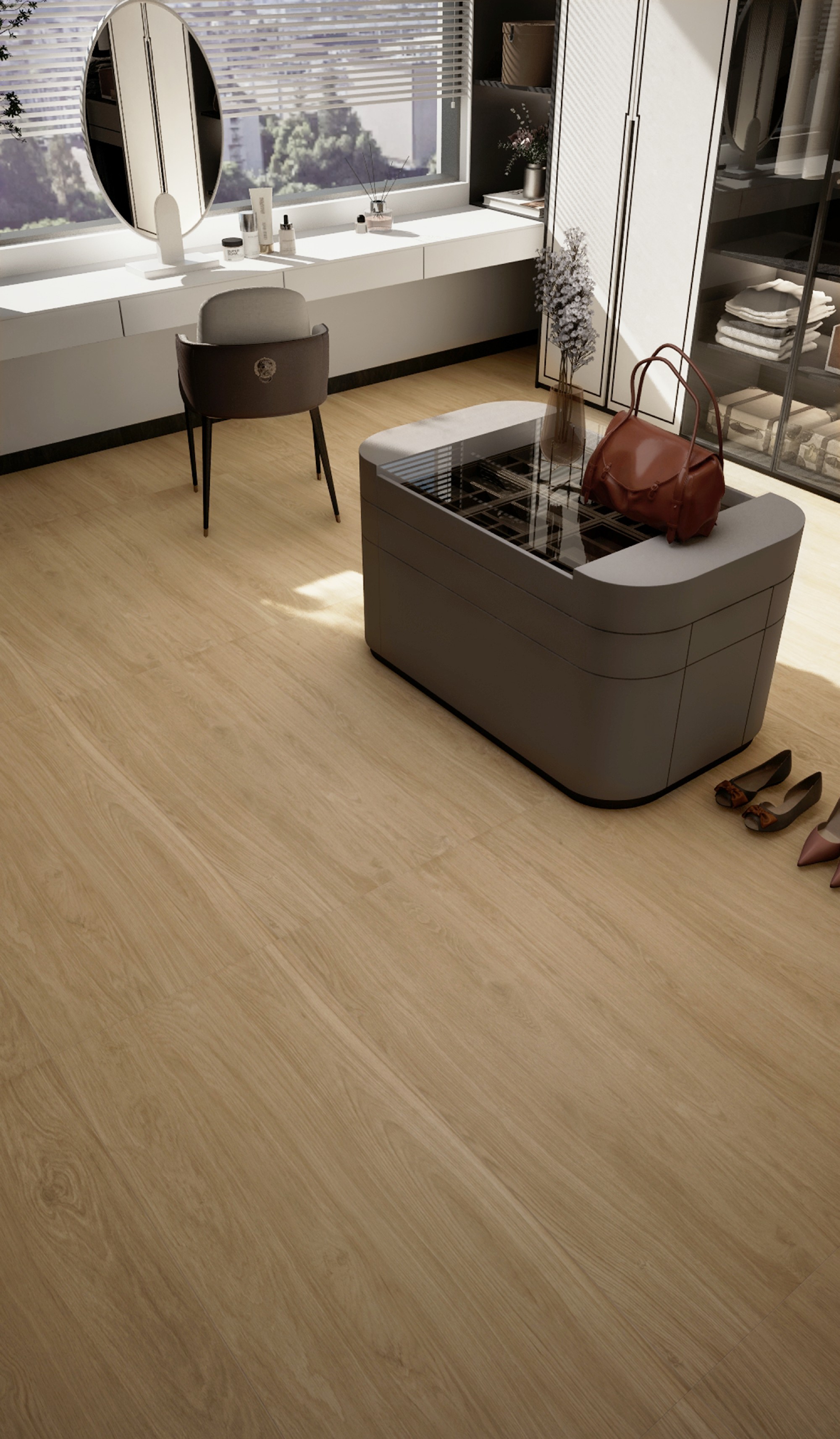 暮棕木紋磚 以黃昏時(shí)分的溫暖棕色調(diào)為靈感,搭配天然木紋的細(xì)膩質(zhì)感,營造出沉穩(wěn)而優(yōu)雅的家居氛圍。其表面逼真還原木材紋理,同時(shí)具備瓷磚的耐用性與易清潔特性,既保留了實(shí)木地板的自然美感,又解決了其易磨損、難打理的痛點(diǎn),是追求質(zhì)感與實(shí)用性的絕佳選擇。