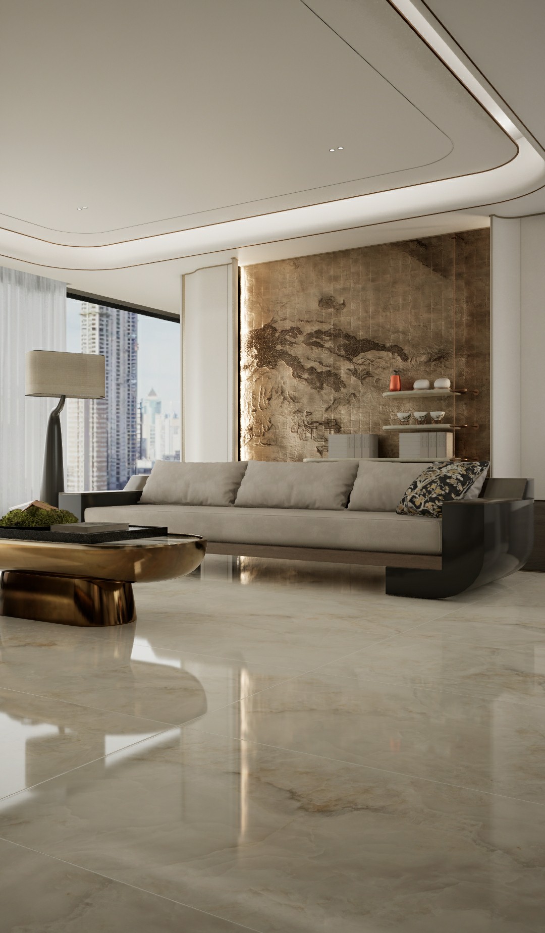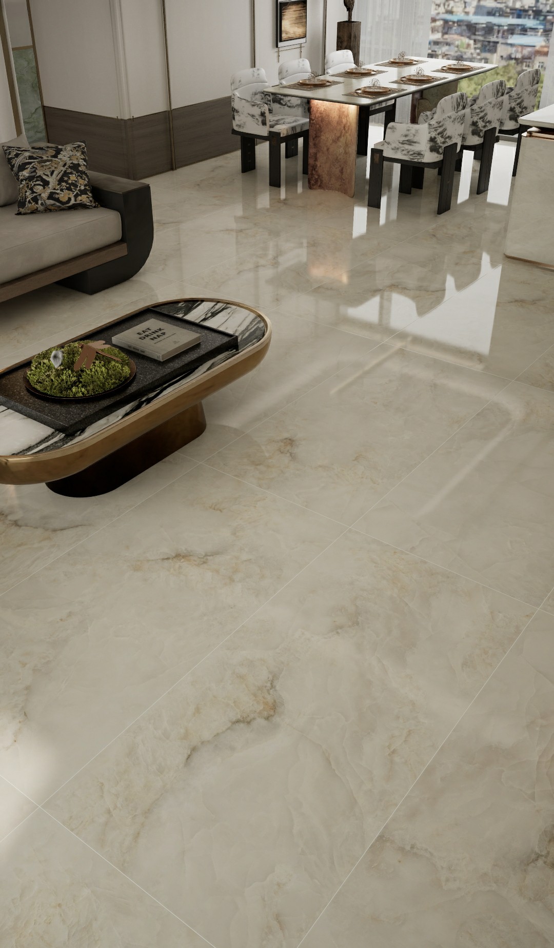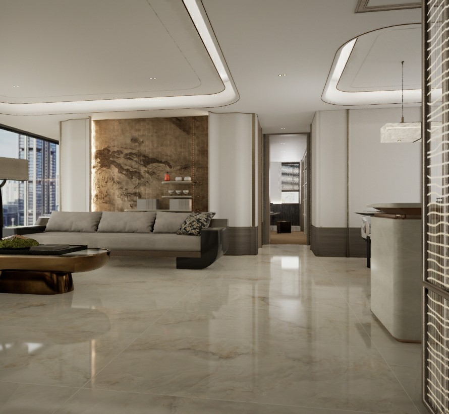 以高山白雪為設計靈感,白色基底搭配錯落有致的山脈,既溫柔高雅又沉靜內斂,在無際的茫茫白雪中彰顯不一樣的魅力,白雪公主的純潔柔和配上淡雅的自然脈絡,令人嘆為觀止。