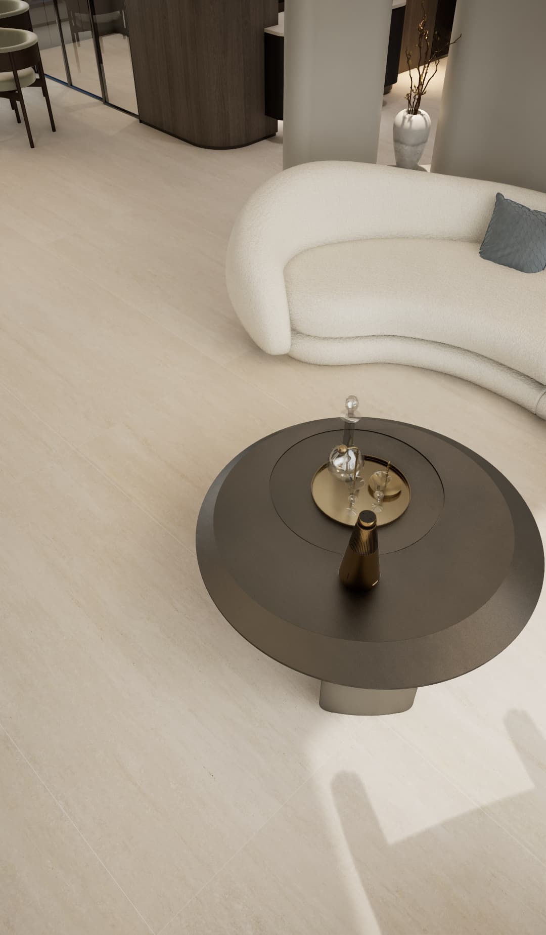 流暢的線條設計,將經典洞石的自然抽象成為有機形態,展現了返璞歸真的自然意境,重現天然的生命本色。