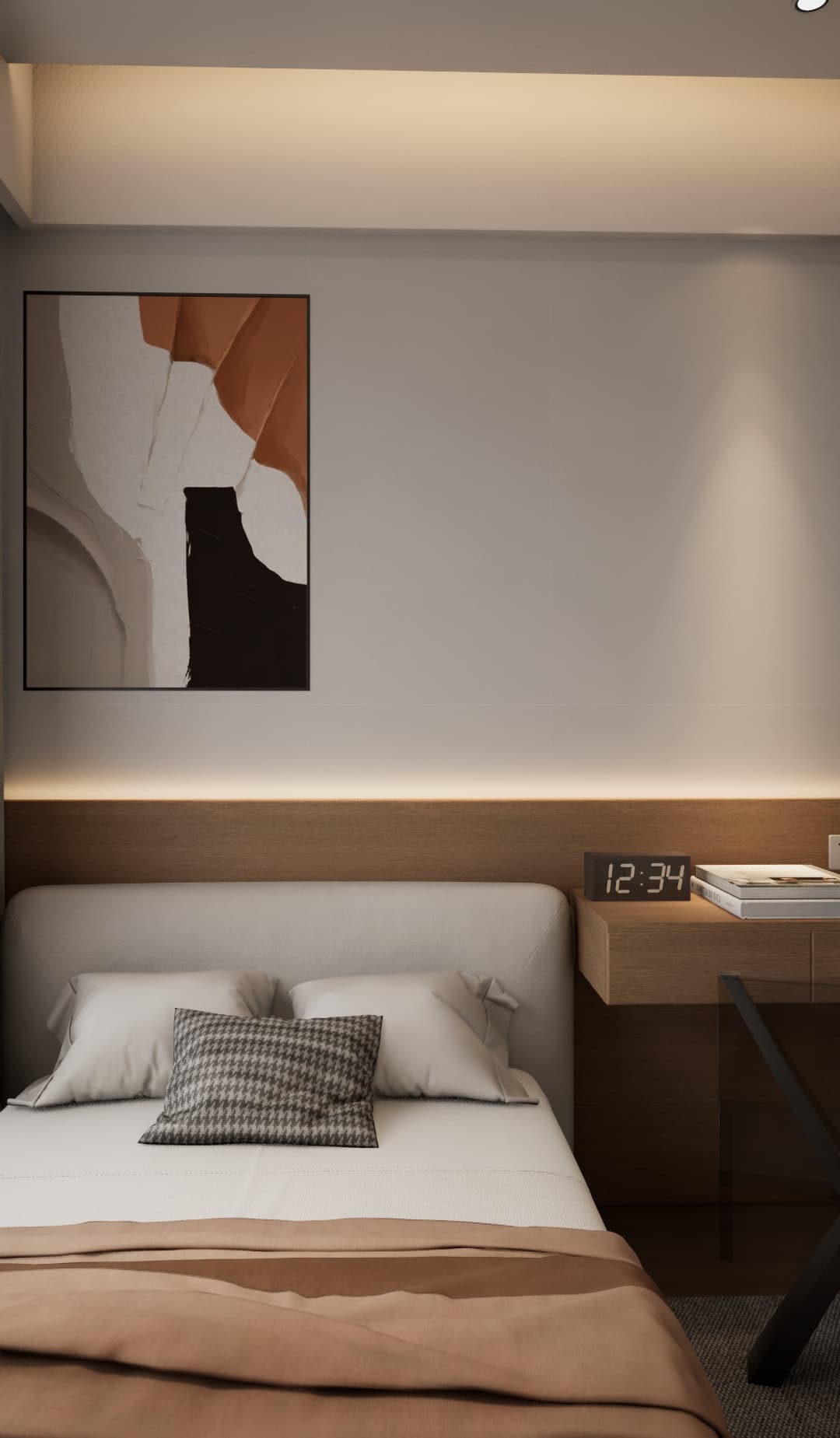 灰色底紋自然而然的提升了空間的優(yōu)雅質(zhì)感,深淺相映,精致和諧。